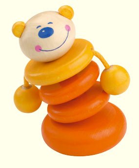 Made of beechwood, Haba Growl - Clutching Toy is built for babies. Little ones will enjoy grabbing this rattle and listening to its soft sound. Help kids develop their sensory perception while they tightly clutch this toy in their little hands. The attractive colors used in this rattler are water-based and nontoxic.