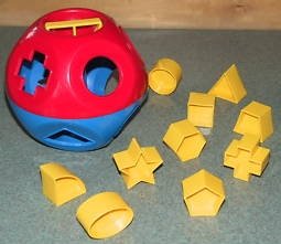 Classic rattle, shape-sorter and counting toy! Here's a toy that grows with a child, from infants to pre-schoolers. As a rolling rattle, it has lots of open spaces for infants to grab. Toddlers can use the 10 pieces to match the shapes on the toy, allowing them to identify shapes and develop coordination and dexterity. Each piece also has a number on one side with the corresponding number of dots on the other to teach preschoolers number recognition and counting.